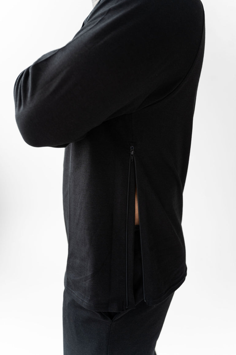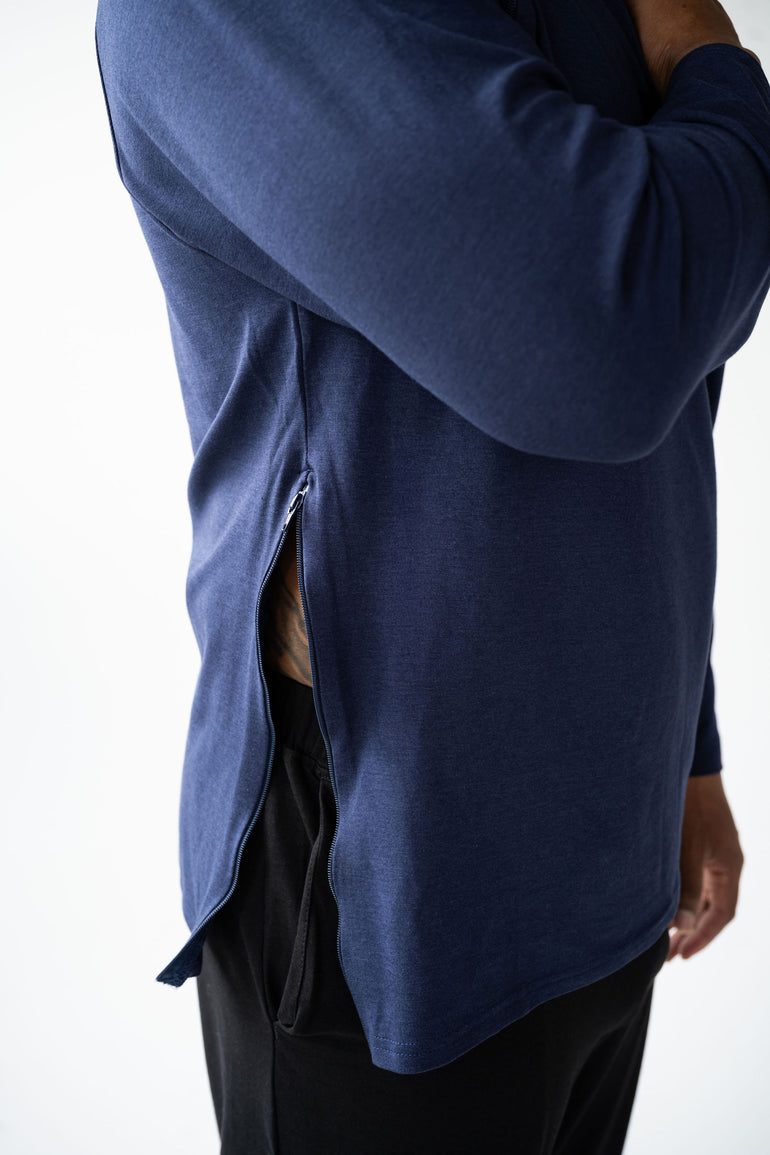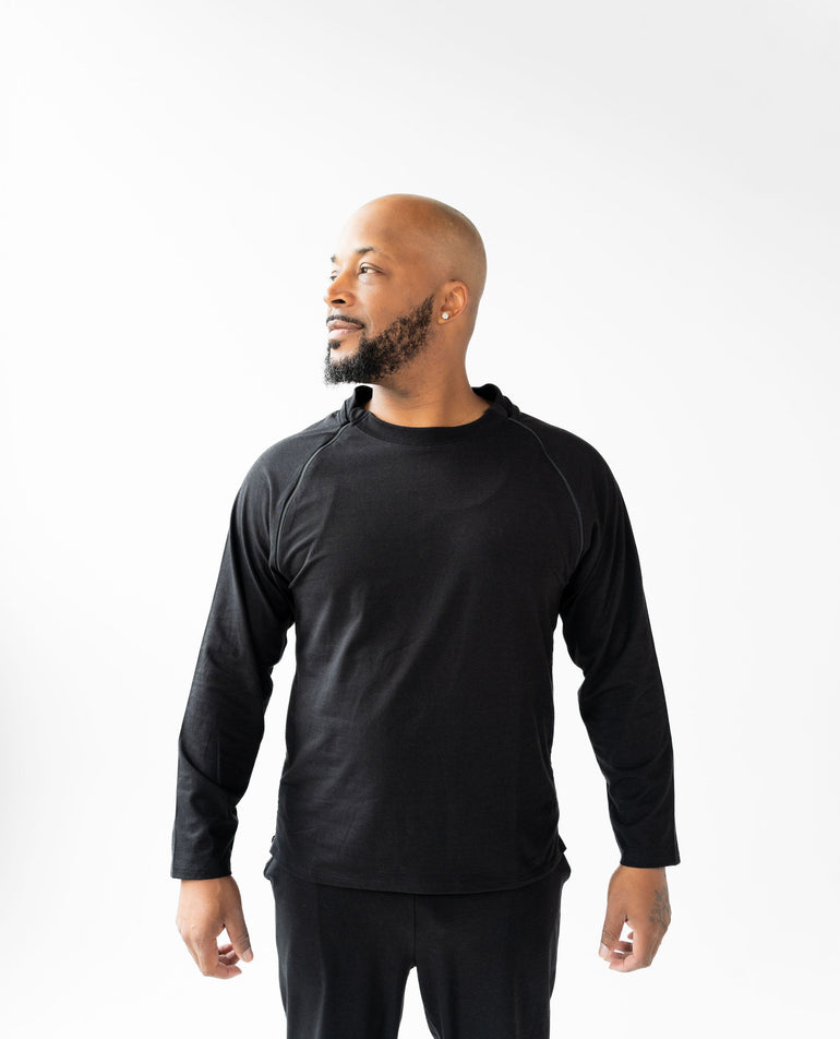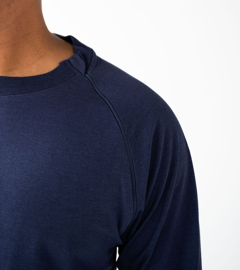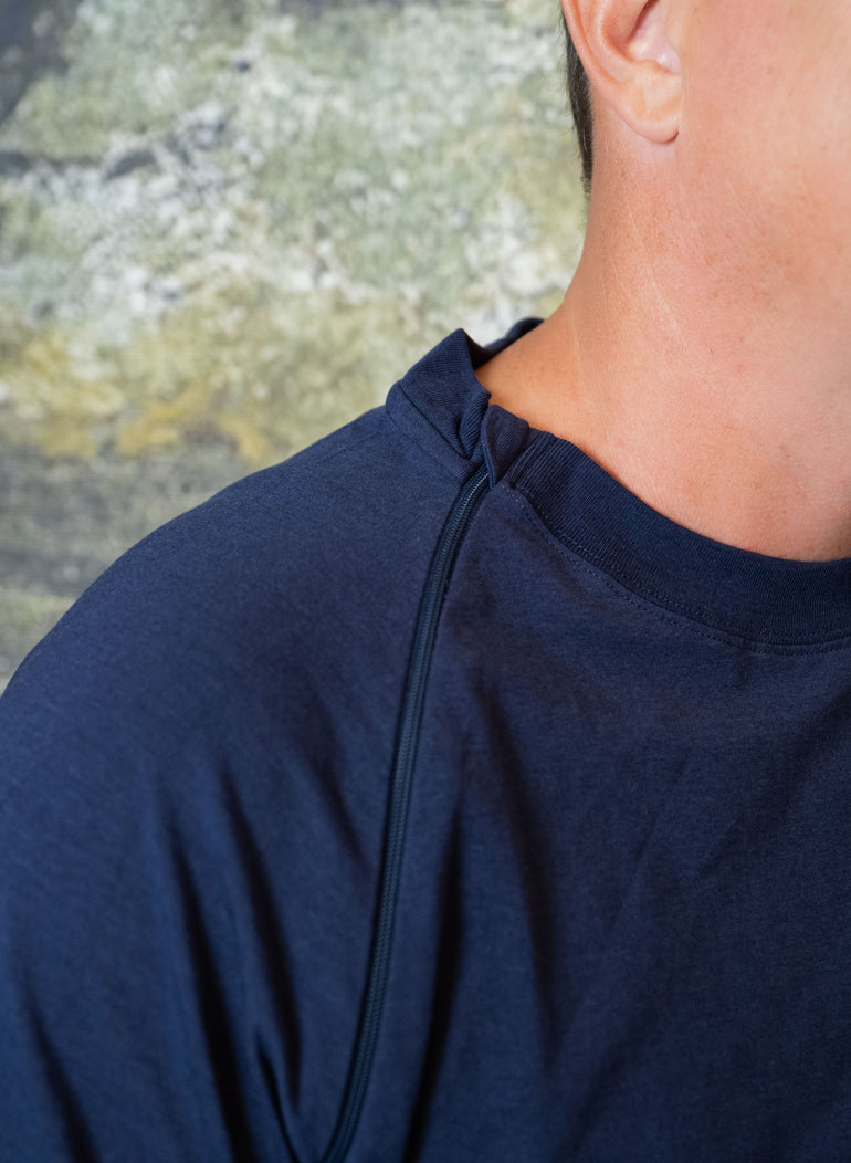 This isn’t just another shirt—it’s your go-to layer for treatment days and everyday life. With a clean, classic crew neck fit and smartly placed access points, it’s made to keep you warm, covered, and in control—no need to undress for care. Soft, durable, and made to move with you—it helps you feel more like yourself, even on the toughest days. Designed to support your health, comfort, and dignity—whether you're at the infusion center or heading out the door.