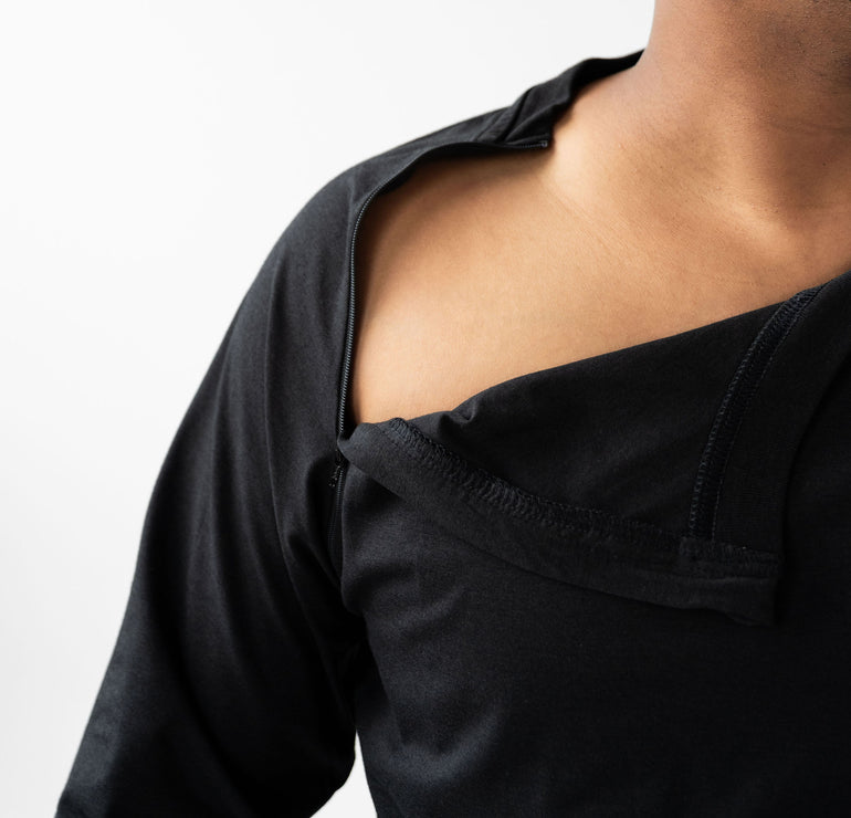 - Hidden diagonal zippers for easy, discreet access to ports and medical treatment areas.