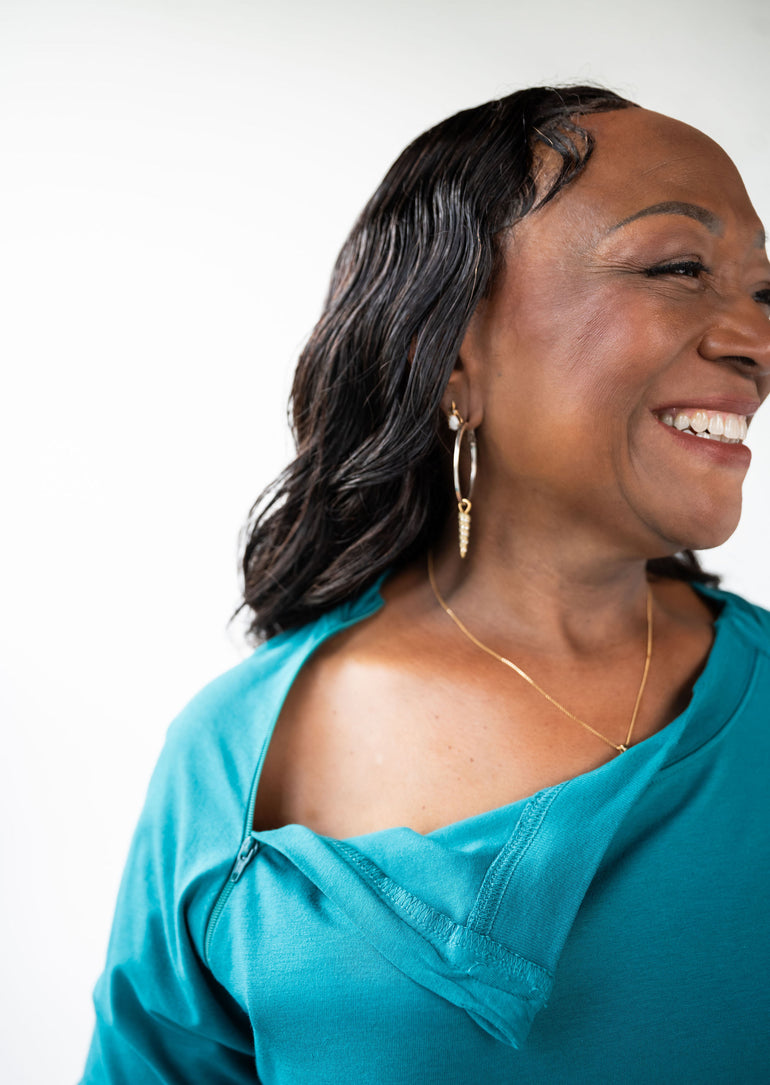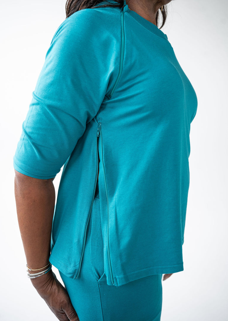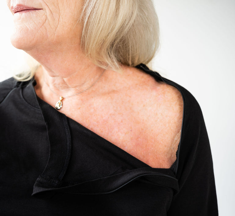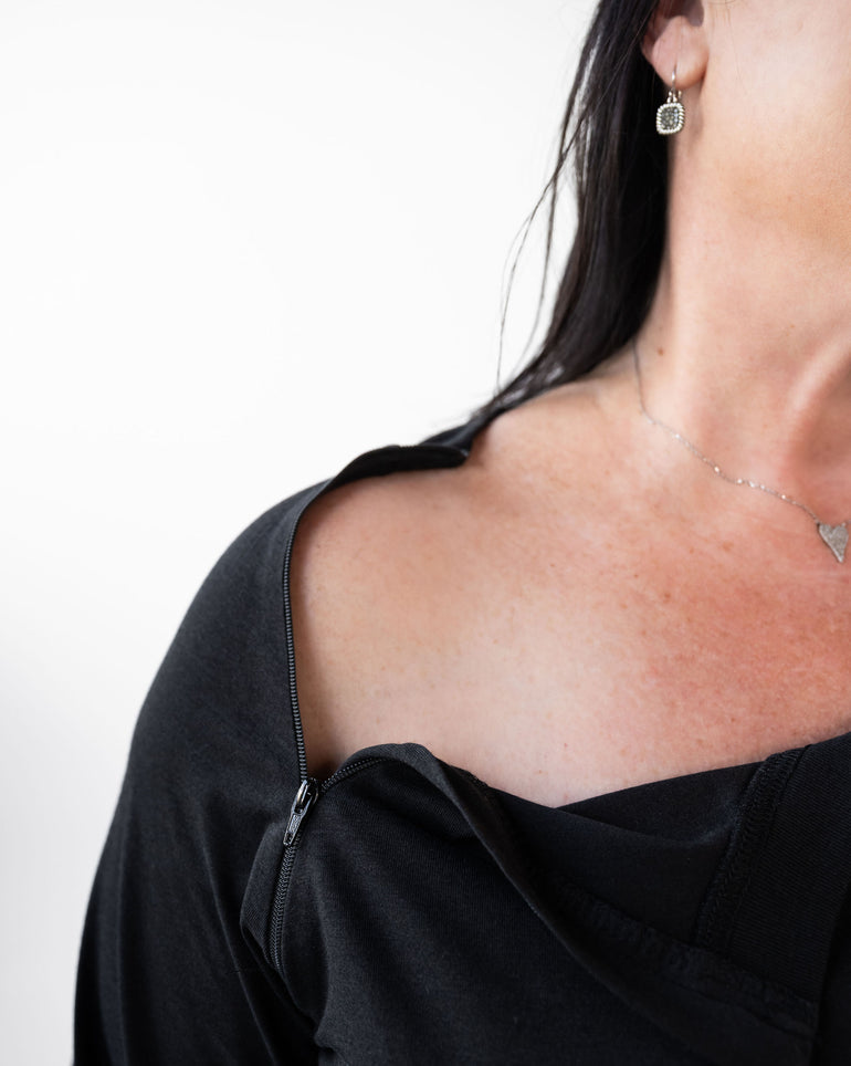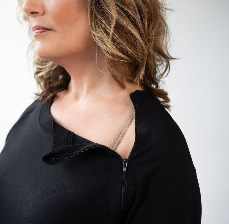 A functional, flattering, and discreet top designed to keep you warm, confident, and comfortable—without ever having to disrobe. With a timeless silhouette and thoughtfully engineered access points, it supports you through treatment and beyond with ease.